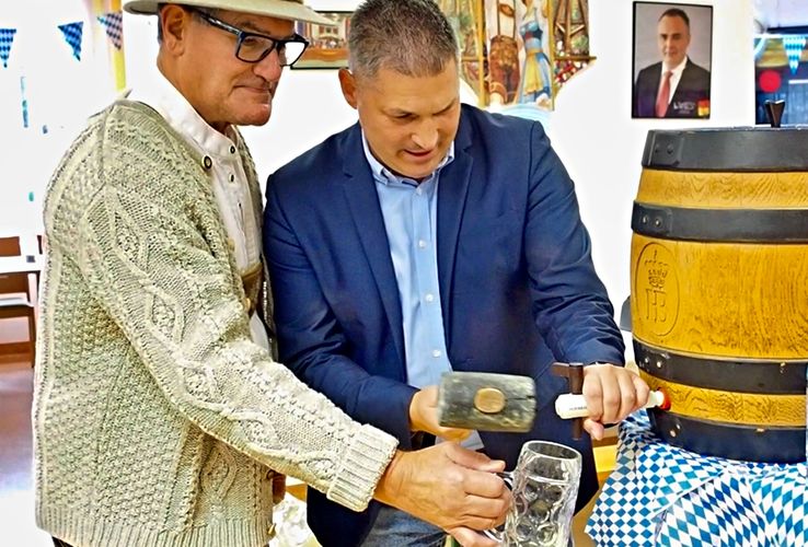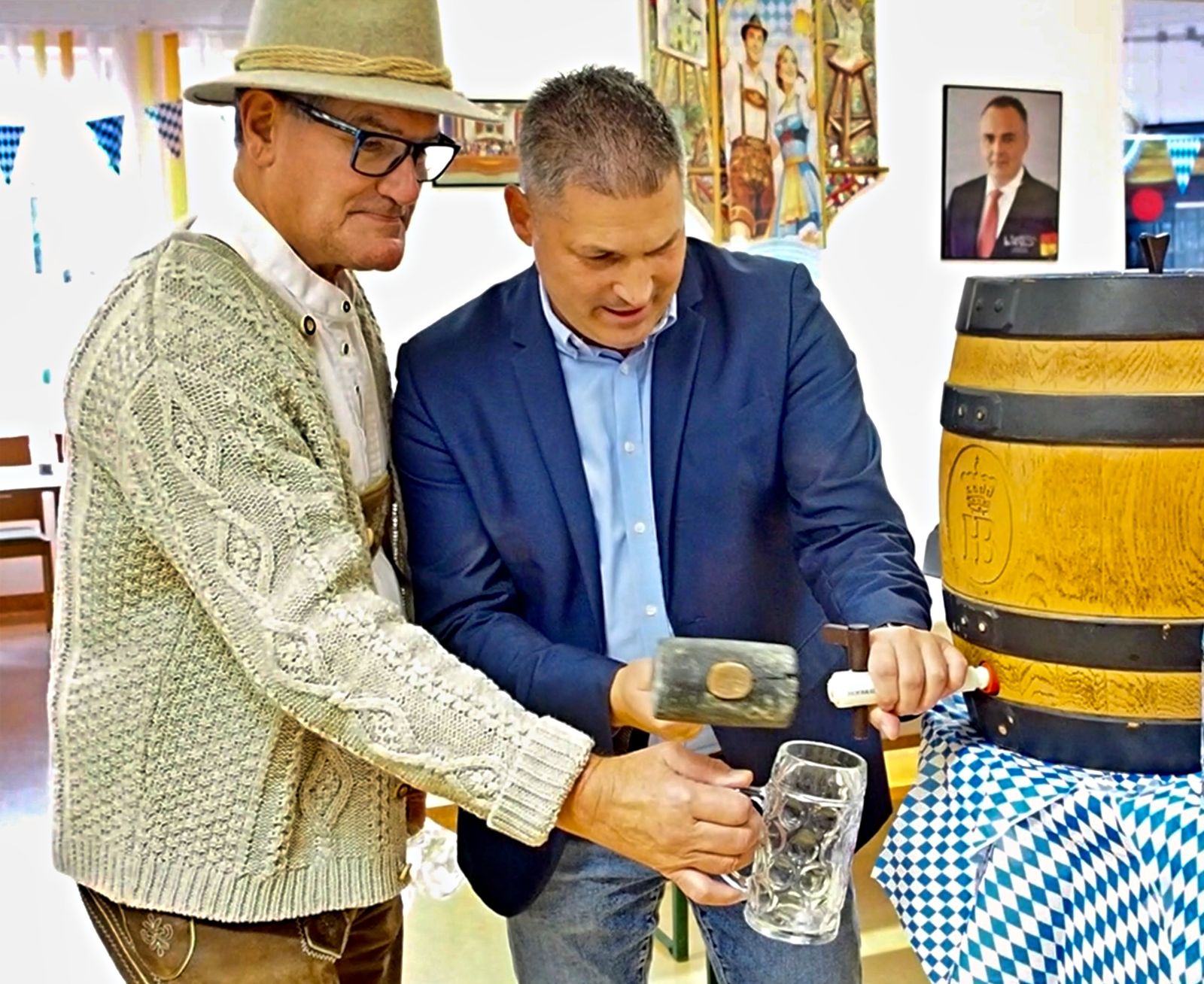 gekleidete Besucher ein. Nach dem Anstich des Bierfasses durch Bgm. Andreas Rotpuller